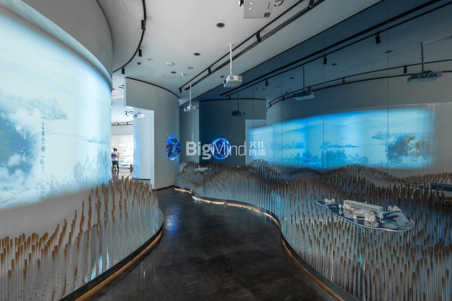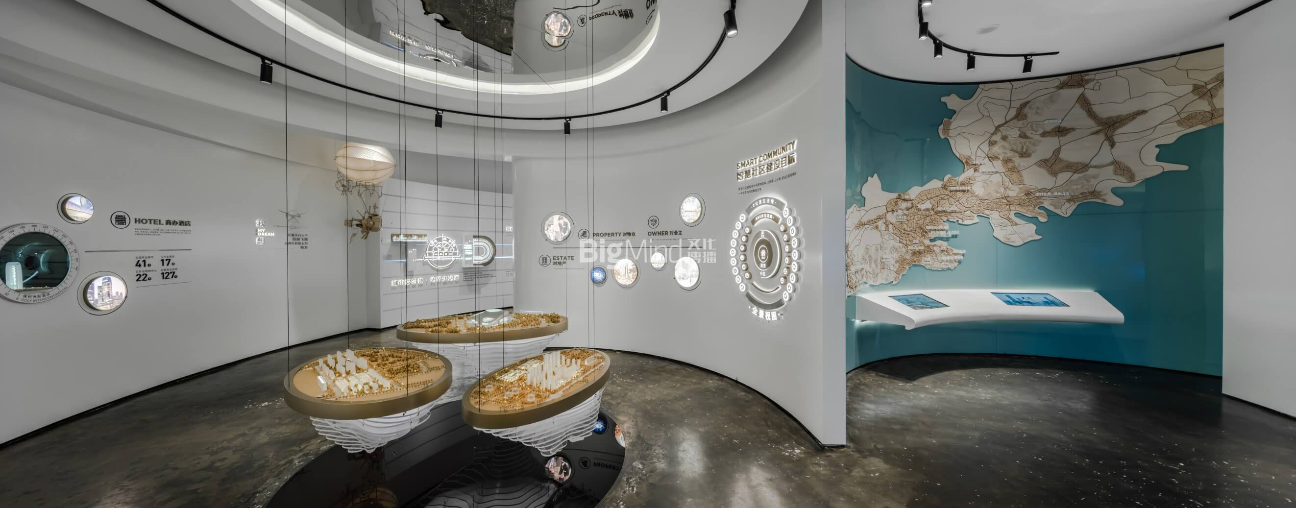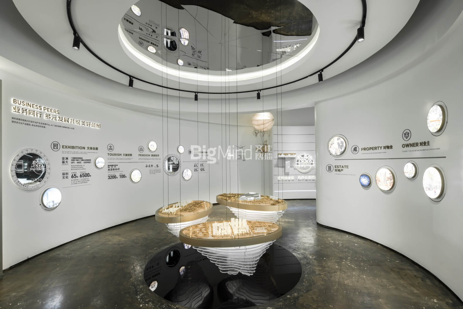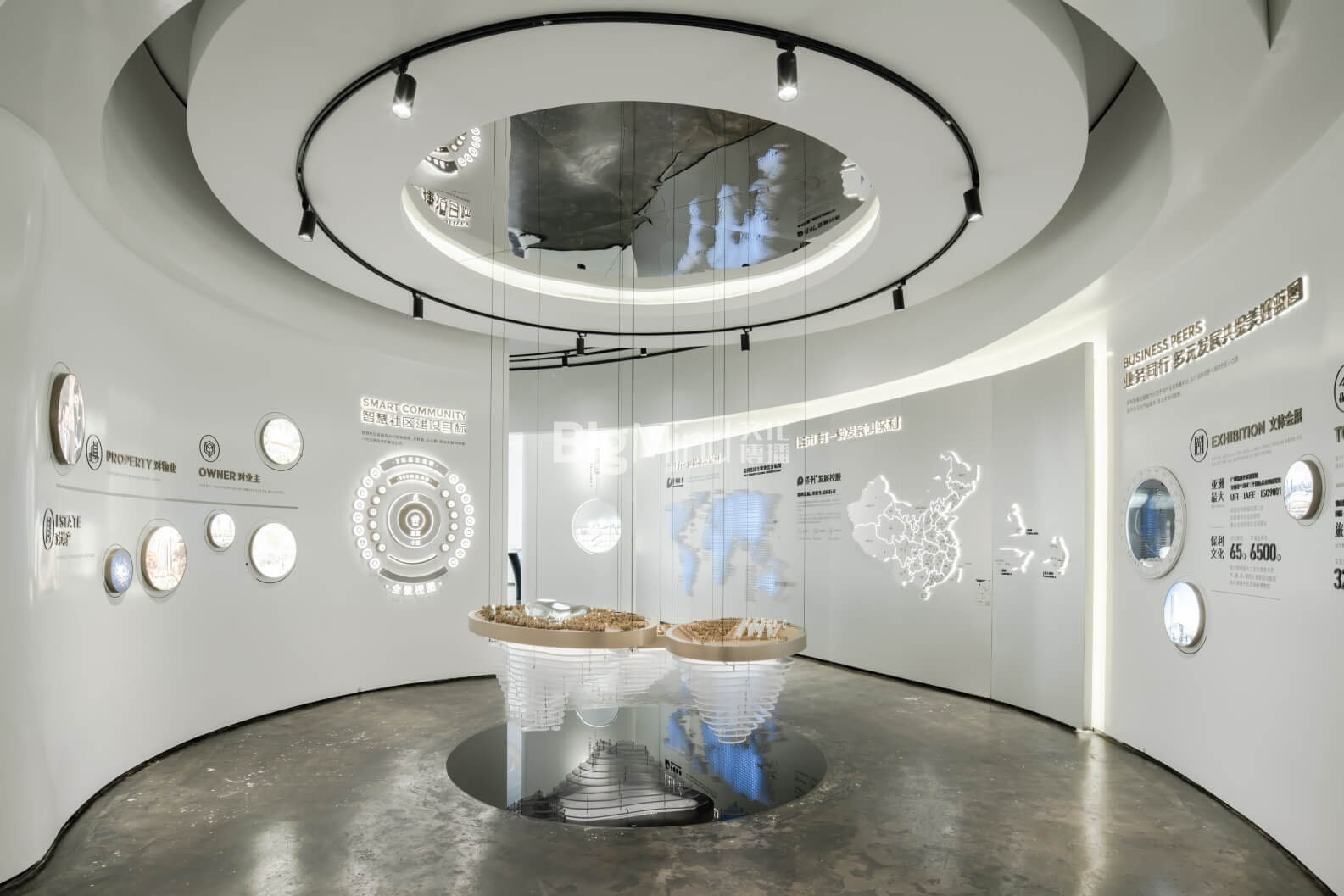 紧接着是素净的多维交通立体吊装模型更直观地解构和阐释TOD所创造的活力城市。通过异形的艺术影音区,体验衍生的无界生活,传达梦想之城的项目价值点。